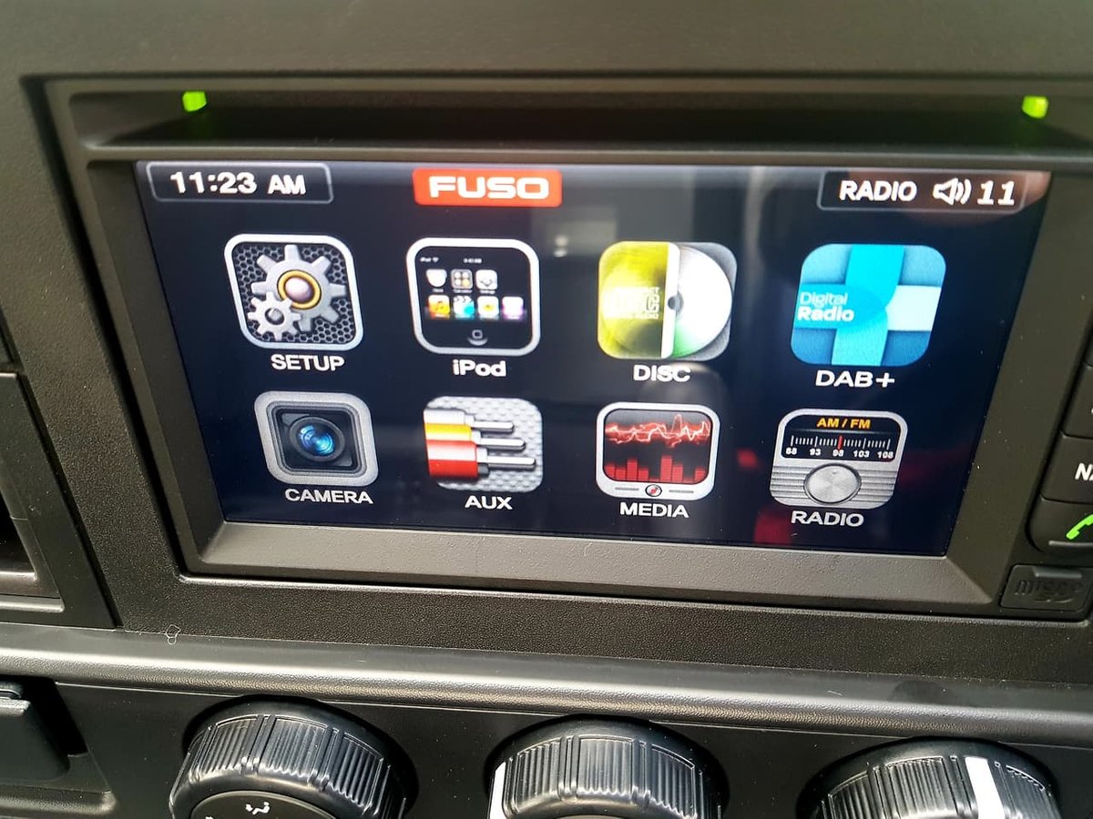 Fuso Multi Media Unit Includes - Satellite Navigation, including Maps and 3 years of updates, Bluetooth hands free phone connectivity, Digital radio DAB+ (AM/FM is also std), USB port, LCD colour display with touch screen control, Reversing camera standard (Up to 5 Camera can be displayed)